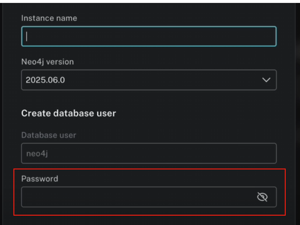 下面是Neo4j的创建界面,用户名不用修改密码的话使用自己能记得住的上面之前的配置的时候需要用上:
