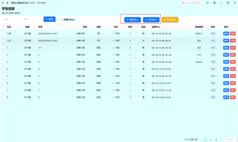 里面的功能很多,我带大家看一下主要的几个功能,首先学生信息,也就是你需要连接多少个绘画面板都在这个学生信息界面中录入: