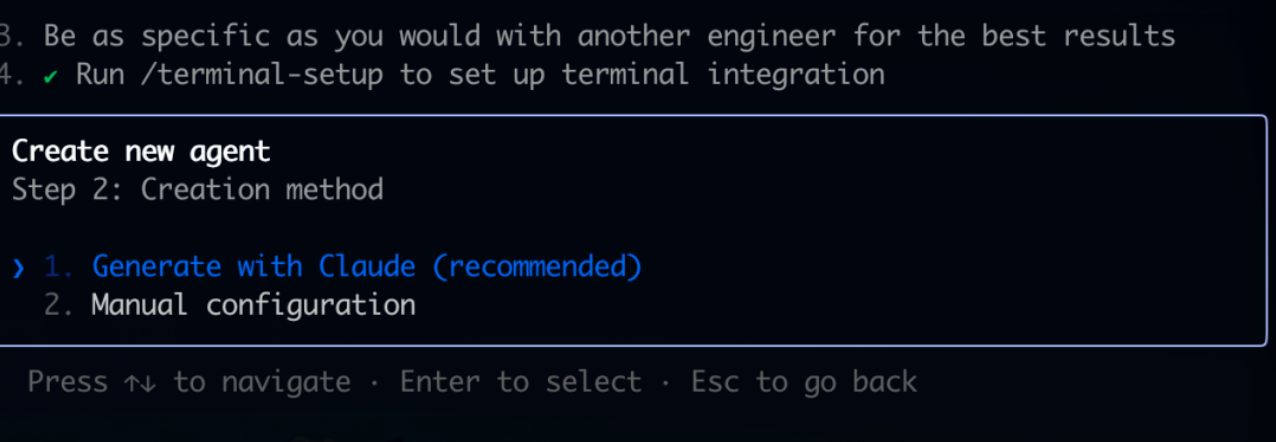 接下来是定义代理核心能力的部分。官方推荐一个高效的做法:先让Claude为你生成一个初稿,然后再进行精细化调整。