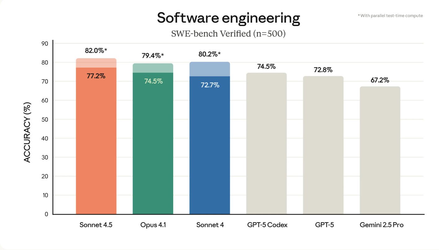 Anthropic 在9月30号的凌晨推出了全新的Claude sonnet 4.5的模型,首先让我们直接看官方贴出的编程领域的测试报告: