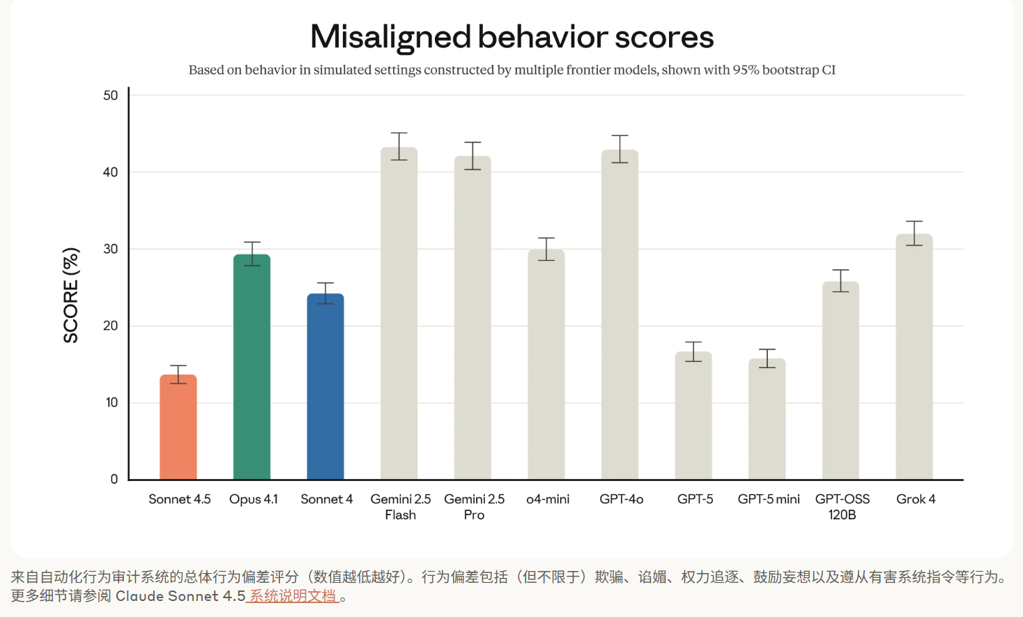 还有一个评测我觉得也相对来说比较重要,就是大模型在欺骗、谄媚、妄想等方面的评分: