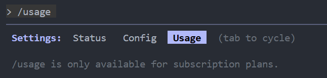 1、现在claude code支持查看用量了,使用/usage即可查看使用限制,但是我在windows电脑上实际操作的时候是查看不了的如图: