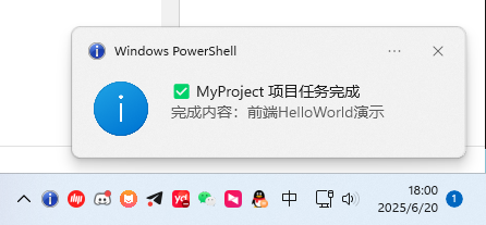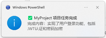 * 每次完成任务后,使用以下命令发送Windows通知给我,标题包含项目名称,消息中简要说明完成了什么任务: