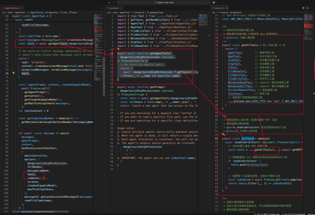不过 Task 虽然能调用工,但是提示词里面要求不能编辑代码文件,因为如果修改可能会破坏主任务中的上下文 === 5. IMPORTANT: The agent can not use ${http://BashTool.name}, ${http://FileWriteTool.name}, ${http://FileEditTool.name}, ${http://NotebookEditTool.name}, so can not modify files. If you want to use these tools, use them directly instead of going through the agent.` ===