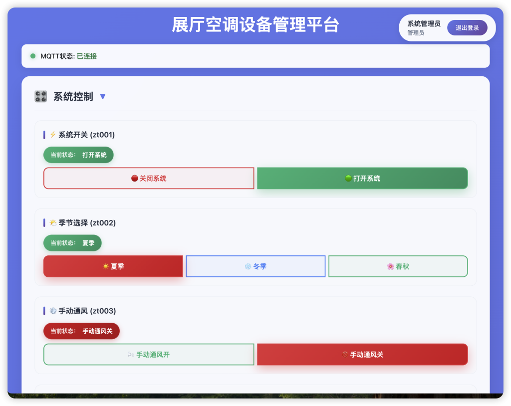 本项目是通过构建MQTT服务器通过mqtt协议和plc设备进行通信,从而获取空调硬件设备相关的信息,例如:模式信息、温度信息、具体房间的设备信息详细信息等,也可以通过mqtt平台进行设备的控制功能